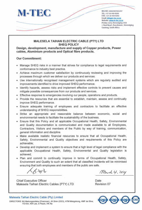 Also known as M-TEC, has been a leading player in the cable industry in South Africa for over 50 years. Established in 1911, M-TEC has developed into a market leader in the wire
